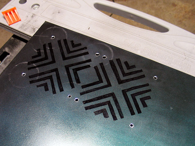 The cut-outs in the template were filled in with sharpie to provided guides for the ensuing carnage.