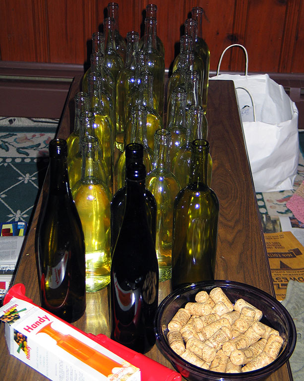 Next is the daunting task of hand-corking 28 bottles.