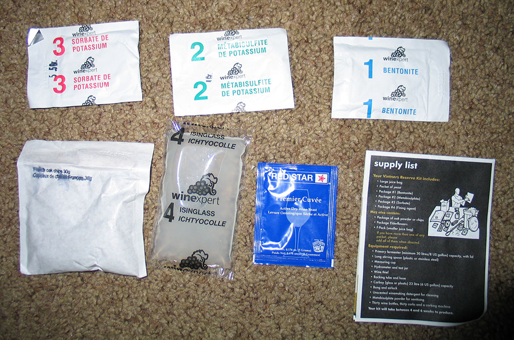 The wine kit came with 2.5gal. of juice, some very good directions, and all the chemicals needed for fermentation and fining.