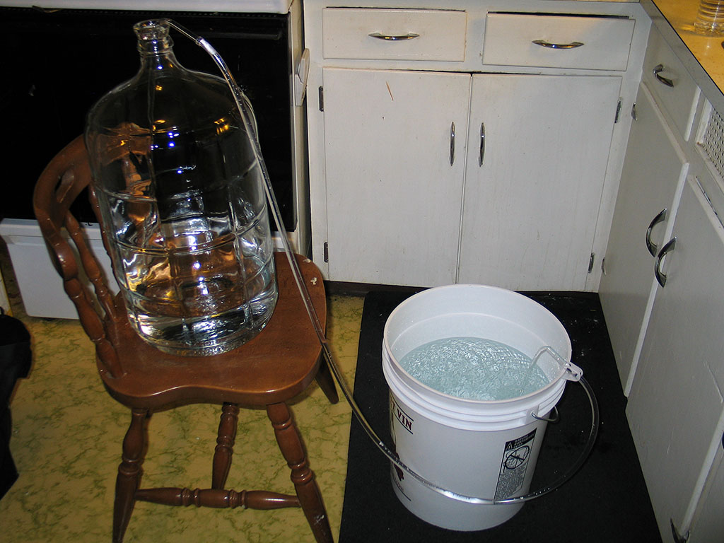 3. the carboy was filled to capacity with water and racked into the fermentation bucket to mark how high to fill for primary fermentation