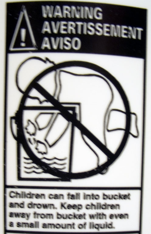 I love warning label drawings and this one cracked me up so I had to share it here. So, do remember that if you have a 2 year old; leaving him unsupervised around your open bucket of alcohol could be dangerous.